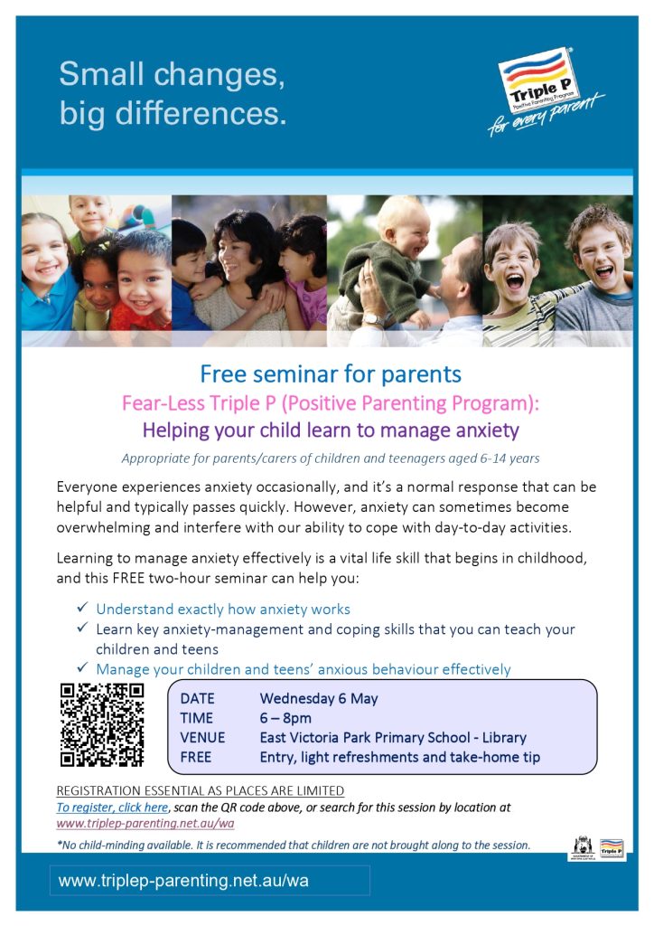 We are offering Fear Less on Wednesday 6 May in the school library from 6 – 8pm.
